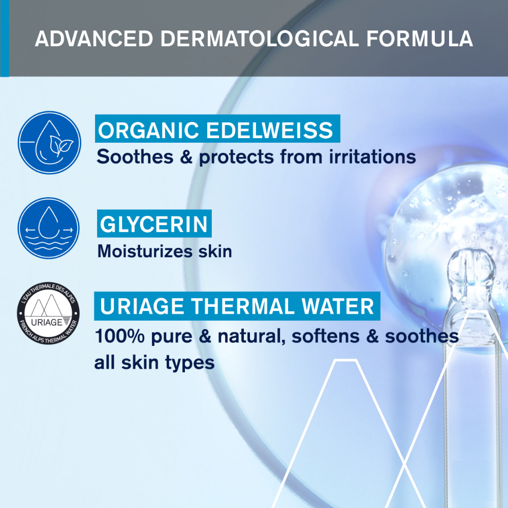 Enriched with Uriage Eau Thermale and organic Edelweiss extract, this gel will bring you a feeling of freshness while providing comfort to your skin.