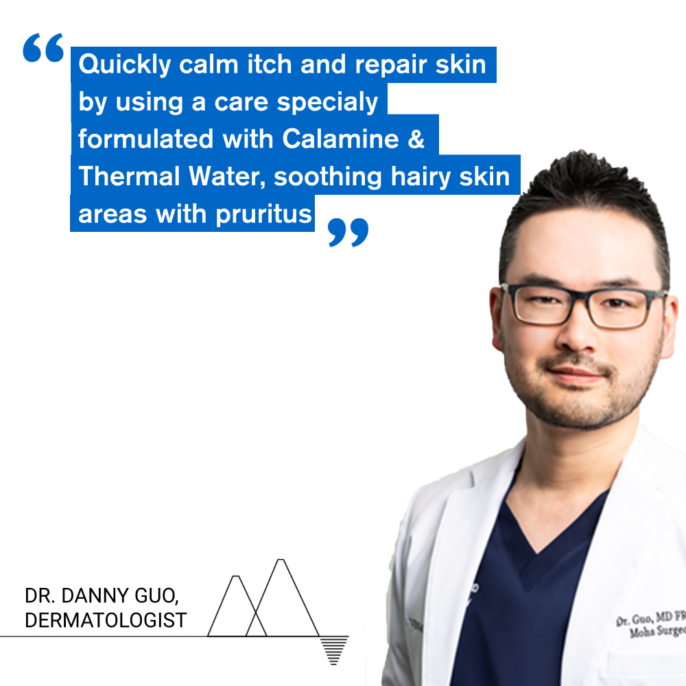 Antipruritic Action: The high concentration of soothing dermatological active ingredients : [8% Calamine + Glycine + Chamomile] reduces the sensation of itching and helps restore and strengthen the skin barrier.